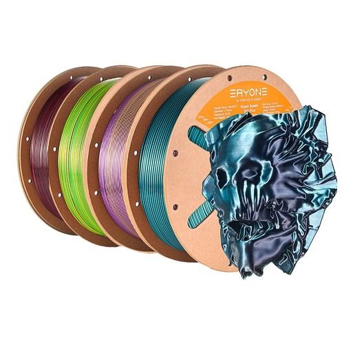 Le filament de soie bicolore ERYONE est fabriqué à partir de deux couleurs individuelles, extrudées en un seul brin de filament. Vous pouvez changer la couleur visible en faisant pivoter le filament de mélange de couleurs dans différentes orientations.