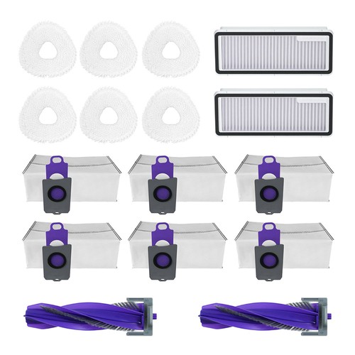 Ensemble d'accessoires originaux Narwal Freo X Ultra/Z Ultra comprenant 6 balais à franges, 6 sacs à poussière, 2 filtres pour conteneurs à poussière et 2 brosses à rouleaux.