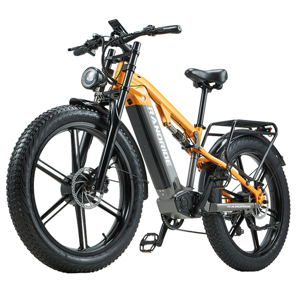 Adaptabilité tout-terrain avec des pneus larges de 26×4,0" et double amortissement.