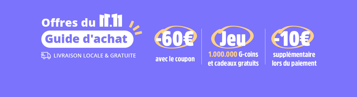 Achetez des offres spéciales1. Abonnez-vous pour bénéficier d'un coupon de réduction de 50€ sur 500€ et d'un coupon de réduction de 10% (applicable sur tout le site).