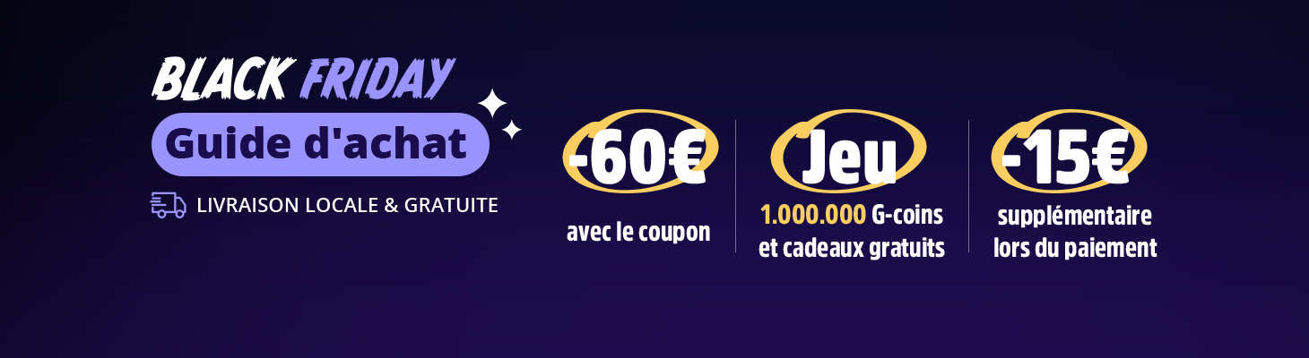 Achetez des offres spéciales1. Abonnez-vous pour bénéficier d'un coupon de réduction de 50€ sur 500€ et d'un coupon de réduction de 10% (applicable sur tout le site), valable à partir du 20 novembre à 9h00.